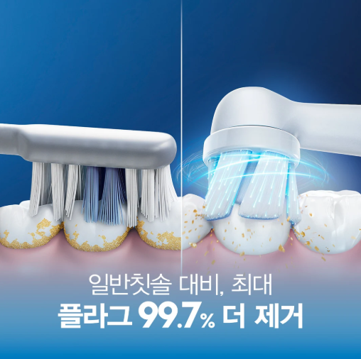 일반 칫솔 대비 최대 99.7%의 플라그 제거 효과를 제공한다고 알려져 있습니다.